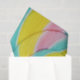 Papel tecidular com uma foto brilhante. Uma foto macro de um pirulito. Cor azul rosa e amarelo pastel em um padrão espiral.