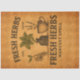 This Fresh Herbs design features vintage apothecary-style typography paired with classic botanical illustrations, including potted herbs, dried sprigs, and antique containers. Set against a warm, aged background, the layout reads like an old herbal label or market sign, making it ideal for traditional and rustic décor projects.