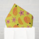 Estas são frutas bonitinhas de manga com pequenos padrões de flores em fundo limão amarelo. As mangas são coloridas em marigold e as flores são melões vermelhos coloridos. A design tem vibrações positivas no verão e é papel de tecido com aparência excelente para festas de verão
