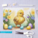 Celebre a Páscoa e os momentos de felicidade primavera com este adorável pintinho que fica perto de ovos decorados.