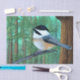 Um belo pictuesco Chickadee encravado entre os verdes.