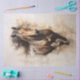 Uma pintura aquarela de um cavalo marrom galopando captura a majestosa beleza e força deste belo animal.