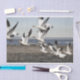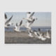 Decorado com uma imagem de um bando de gansos de neve (chen caerulescens) voando ao longo do braço de Turim no Alasca. Por Ted Raynor