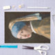 Johannes Vermeer (Delft,1632 - Delft 1675) pintor neerlandês de idade do Ouro. Título: Rapariga com pérolas (1665). Rapariga com pérolas (1665) é a pintura mais famosa de Vermeer. Não é um retrato, mas um "tronie" - uma pintura de uma figura imaginária. Tronies retratam um certo tipo ou personagem; neste caso, uma menina de vestido exótico, vestindo um turbo oriental e uma pérola improvavelmente grande em seu ouvido. Johannes Vermeer foi o mestre da luz. Isto é mostrado aqui na suavidade do rosto da menina e nos vislumbres de luz nos seus lábios úmidos. E claro, a pérola brilhante.