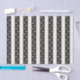 Esse charmoso impressão tem trilhas de pata de gato (anatomicamente corretas) andando para cima e para baixo por amplas faixas pretas - também disponíveis com estampas de pata de cachorro.