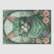 Papel De Seda Gato e Flores Verdes - Decoupage_