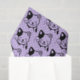 Papel tecidular desenhado com a ilustração de um gatinho sorridente e balançando com um ponto preto ao redor do ouvido. Fundo bolinhas roxo. Simples e adorável.