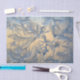 Caracteriza a geada do cristal de gelo em uma janela com um toque da luz amarelo alaranjado que incandesce completamente. Nas cores do amarelo azul, cinzento, branco e alaranjado. Teste padrão natural muito bonito da geada.