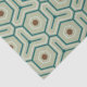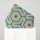 Geometric pattern with interlocking hexagons in green and teal, featuring brown hexagons in the center. The design is symmetrical and retro-inspired.