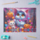 adorável gatinho negro, lua de Cheio, abóbora nas folhas do outono AI Art por minx267