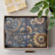 Papel De Seda Girassóis e roxas Marinho Azul Dourado Decoupage