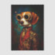 Steampunk Beagle Portrait with Brass Goggles and Ornate Victorian Jacket, rich teal damask background, anthropomorphic dog artwork for decoupage and mixed media.bThis striking steampunk beagle features a noble side profile, dressed in an elaborate Victorian brocade jacket in deep black and antique gold, accented with a quilted crimson lapel and mechanical collar detail. Oversized brass aviator goggles with intricate gears and metal fittings rest confidently over the eyes, creating a bold industrial contrast against the dog’s soft white and chestnut coat.bThe background is a moody teal with subtle vintage damask patterning, enhancing the dark academia and gothic romance undertones while maintaining warmth through the rich gold and red palette. The expression is calm, intelligent, and slightly enigmatic — suggesting explorer, inventor, or gentleman adventurer.