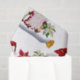 Papel de tecido de Natal com gnomos, poinsettia e sinos. Papel de tecido festivo para todas as suas necessidades de embalagem de presente.