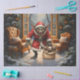Goblin de Natal assustador - Papais noeis Mau de Fantasia Escura Arte Secundária. Um goblin sinistro vestido de Papai Noel traz uma torção escura para o feriado. Com olhos vermelhos brilhantes, um sorriso ameaçador, e um cheio de pequenos goblins assustadores, ele está em uma sala nevada, festivamente decorada. Árvores cobertas de neve, lanternas brilhantes e duas cadeiras contribuem para a inquietante atmosfera natalícia. Perfeito para fãs de horror, fantasia escura e designs de férias de alternativo.