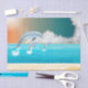 Ilustração de três golfinhos invadindo o oceano. Personalização de 100%. Clique no botão PERSONALIZAR para adicionar, mover, excluir, redimensionar ou alterar qualquer uma das fontes ou gráficos.