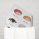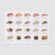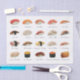 A ilustração apresenta 20 tipos diferentes de sushi em fundo branco
