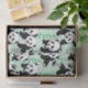 As crias de urso preto e branco, em forma de padrão, com bambu e um fundo verde que você pode personalizar.