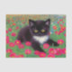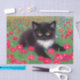 Papel tecidular com um gato gustav Klimt tuxedo! Este adorável gatinho preto e branco se senta num campo de flores vermelhas, azuis, brancas e laranja. Um presente incrível para amantes de gatos e entusiastas de arte austríacos!