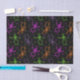 Um padrão de esqueletos coloridos e dançantes acentuado com estrelas minúsculas numa cor de fundo preto e personalizável. Este embrulho de presente assustador e design de festas é perfeito para adicionar um toque de capricho à decoração e festas de Halloween!