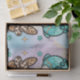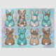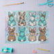 These cute Easter bunnies are all dressed up for the latest line dance or country and western shindig. With their cute bows, cow print hats, stripes, and turquoise marble print fur, they're all ready for a great party or for a fun Easter day. This delightful pattern features eight unique bunnies, each adorned with stylish patterns like leopard, cow print, and zebra stripes, along with cute bows and hats. Tiny stars, carrots, eggs, and flowers surround the cute little rabbits. Perfect for adding an extra special layer of surprise to any gift bag or box during the spring holidays, lining Easter baskets, or for decoupage or craft projects. The soft pastel color palette, highlighted by a beautiful teal and pink background and subtle gold accents, adds a touch of whimsy and elegance.