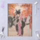 The cover of Harper's Bazaar magazine from September 1913 featuring art deco women's fall fashion. Very colorful in orange, pink, black and peach. Two women in high fashion turn of the century dresses and lovely black feathered hats.