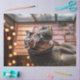A imagem mostra uma representação digitalmente alterada ou artisticamente criada de um hipopótamo vestindo óculos vermelhos. O hipopótamo tem um padrão único e manchado na pele, o que não é típico dos hipopótamos reais. O fundo apresenta iluminação ambiente quente com várias lâmpadas redondas e uma janela que permite a entrada de luz natural. O cenário parece ser interior, possivelmente numa sala confortável e decorada. Essa imagem é interessante devido à combinação química e surreal de um hipopótamo com acessórios semelhantes aos humanos e um padrão invulgar da pele, criando uma cena visualmente impressionante e imaginativa. Hipopótamo alterado digitalmente, óculos de estrutura vermelha, pele única e espetada, iluminação ambiente quente, ambiente interior, cena química e surreal, cena imaginativa, representação artística, visualmente impressionante.