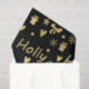 Um Dourado E Preto Padrão De Papel De Tecido Feriado De Diversão De Corações E Flocos De Neve E As Palavras Holly Jolly Em Dourado