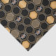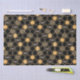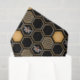 Este design contemporâneo apresenta um padrão geométrico de coloração dourada das colmeias, mamangabas e um fundo preto.