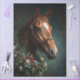 Celebrate the season with this beautifully detailed horse portrait, featuring a rich brown coat, white blaze, and a festive wreath of evergreens, pinecones, holly, and berries. The bold red ribbon adds a cheerful touch, while the moody green-blue background enhances the warmth and depth of the scene. Perfect for farmhouse holiday decor, equestrian gifts, or anyone who loves rustic Christmas charm.