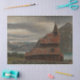 Esta design apresenta uma pintura do artista norueguês Knud Baade (1808-1879). Mostra a Igreja da Escada de Urnes, que é uma igreja de salto do século 12 em Ornes, na Noruega. Uma igreja em pouso é um edifício medieval de igreja cristã de madeira comum no noroeste da Europa. O nome deriva da estrutura de posto e da construção da lintel do edifício, um tipo de moldura de madeira onde o minério que suporta cargas posta-se "stafr" nos Antigos Norse. Há montanhas majestosas atrás da igreja de madeira, e o céu é nublado e atmosférico. Há um muro de pedra tradicional em frente à igreja, e alguns campos e árvores ao lado dela. A arte original foi pintada por Knud Baade em 1832.
