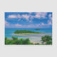 Uma bela foto das ilhas tropicais da Tailândia! As ilhas são cheios de palmeiras e plantas verdes escura, cercadas por água do mar tropical quente e azul sob um céu azul escuro, com nuvens brancas e sábias.