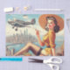 Papel De Seda Ilustração Pin-up do Avião Retro