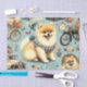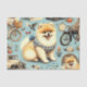 Papel De Seda Ilustração Vintage Pomeranian Sem Costura