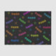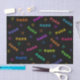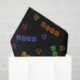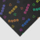 Um padrão para amantes de gatos com a palavra "meow" escrita com uma letra de pata num arco-íris de cores sobre fundo preto. gatinho bonito e colorido rostos completos. A parte de trás é preta e pode ser alterada para qualquer cor com a ferramenta design.