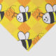 Bela abelha gira voando. Papel de tecido personalizado com padrão de xadrez amarelo e laranja no fundo. A decoração do miúdo e a ideia do presente.