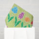 As tulipas do primavera decoradas com bolinhas lunáticas, listras e redemoinhos, nas máscaras de vermelho, azul, alaranjado e do roxo em um fundo verde, fazem a isto um lenço de papel do divertimento para todos os projetos da ocasião e do artesanato que incluem o decoupage. Projetado pelo ©Tim mundialmente famoso Coffey do artista.