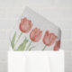 Uma fileira de tulipas cor-de-rosa corais bonito floresce através deste lenço de papel com uma folha de prova da textura do crackle. Projetado pelo artista mundialmente famoso Tim Coffey.