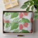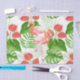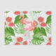 Design de padrão aquoso com flores e aves flamingos, monstera e palmeiras.