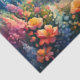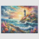 Belo jardim colorido, farol no nascer do sol em um oceano azul