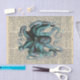 Papel De Seda Jornais Vintage com Disco Gigante de Octopus Azul