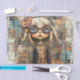 "Dê vida à imaginação com esse tecido de desacoplamento de crianças galhadas e caprichosas, colocado sobre um fundo mosaico vibrante. Envolvido com detalhes brincalhões, engrenagens e cores ricas, este design adiciona um toque de fantasia e criatividade a qualquer artesanato ou fabricação de móveis."