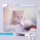 Design apresenta uma fotografia de um gatinho fofo com um chapéu de Natal.