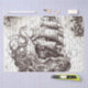 Papier Mousseline Kraken vs pirate ship nautical theme Tissue paper. Perfect for all your decoupage projects and furniture transformation decoupage transferts.