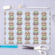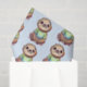 Papel de tecido padrão com uma ilustração adorável com uma preguiça de aparência feliz vestindo uma t-shirt verde. Sentado de pernas cruzadas, com aparência relaxada.