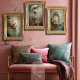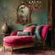 Lady & a Parasol, Ethereal Floral Field, Muted Teal and Fuchsia Pink, Decoupage Tissue Paper.