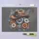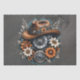 Lágrimas: estilo vaqueiro a vapor. Este chapéu de vaqueiro apresenta uma sombra marrom quente e rica que reflete a robustez clássica e o encanto rústico de um chapéu ocidental. A design combina a estética industrial steampunk com flores naturais delicadas para criar um fascinante equilíbrio entre mecânica e natureza. Um acessório único que exalta tanto um espírito de aventura quanto de elegância.