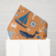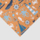 Design de tema oceânico e náutico inclui baleias, marinhos azuis, polvos, caranguejos, cavalos marinhos, rodas de navios, âncoras, faróis e muito mais sobre um fundo cor de laranja. Esta design do tema oceânico pode ser encontrada em travesseiros, bolsas de travesseiro, cobertores de velo, placas de queijo, bandejas de serviço, toalhas de cozinha, conjuntos de banheiro, caixas de presentes e bolsas, placas de papel e guardanapos, fita, papel de tecido, latas de chocolate, frascos, cartas de jogar, adesivos e tantos outros itens!