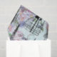 Uma fita azul pastel com a Torre Eiffel e uma colagem de lavanda rosa floral preto manequim. Um design floral rosa boêmio em fundo listrado.