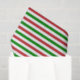 Um papel de tecido desenhado com um padrão listrado vermelho escuro, verde e branco. Personalize a cor branca do plano de fundo, o tamanho do padrão, entre outras opções.