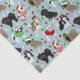 Cães Shih Tzu de Natal bonitos com cores casaco, pretas, brancas, cinzas, ouro e máscara, vestidos em roupas festivas de Natal, chapéus de Papai Noel e blusas de argila com padrão de Enfeites de natal espalhados.